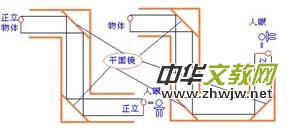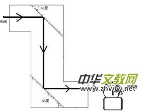 1、打開(kāi)潛望鏡模型側(cè)蓋,觀察內(nèi)部構(gòu)造(兩面鏡子平行且與水平面成45度夾角。