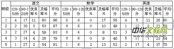 下表是2014年我校九年級部分班級中考第一次模擬考試數(shù)學與語文、英語成績之間的比較。
