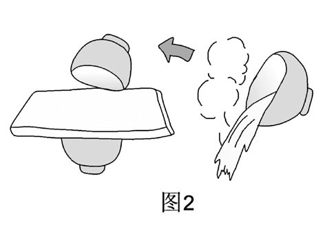 3.1分鐘后,用手提起上面的碗,下面的碗就會(huì)像變魔術(shù)一樣,也跟著被提起來(lái)(如圖3)。(為了安全起見(jiàn),請(qǐng)?jiān)谕胂聣|上毛巾。)