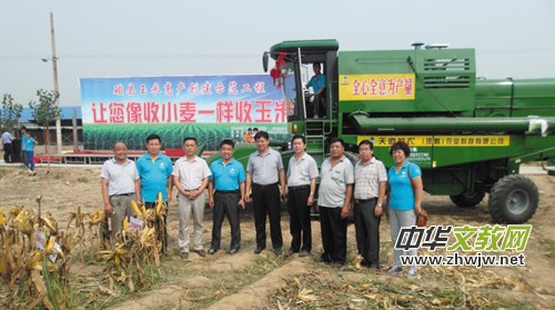 金秋季節(jié),豐收的磁州大地上,一臺龐大的機(jī)器伴隨著巨大的轟鳴聲,轉(zhuǎn)瞬間便將半畝玉米收獲完畢,脫了粒的玉米被吐在了已準(zhǔn)備好的塑料布上,工作人員隨即裝進(jìn)口袋,完成了整個玉米的收獲過程。這是天道益農(nóng)邯鄲農(nóng)業(yè)有限公司今年新引進(jìn)的一臺大型玉米脫粒收獲機(jī)正在田間作業(yè)的情景。“以前我們收玉米全靠手掰,現(xiàn)在有了聯(lián)合脫粒機(jī),可以像收麥子一樣收玉米了。”種糧大戶對這臺新型玉米聯(lián)合收粒機(jī)贊不絕口。為了強化農(nóng)藝與農(nóng)機(jī)結(jié)合,提升農(nóng)機(jī)化作業(yè)率,2014年8月4日天道益農(nóng)公司進(jìn)行考察后,投資50萬元購進(jìn)了這臺型號為東風(fēng)4YZ-6E518的大型玉米脫粒收獲機(jī),該機(jī)實現(xiàn)了玉米由秸稈切斷還田到回收心抽再到脫粒歸倉的全部功能,收獲凈度高、雜質(zhì)少,破碎率低,省工省時高效,實現(xiàn)了像收獲小麥一樣收獲玉米,極大的提高了機(jī)械化作業(yè)率,一次性入倉玉米量可達(dá)3噸,是磁縣、邯鄲及河北省首次引用的一臺大型全功能玉米脫粒收獲機(jī)器。它的投入使用極大的提高了機(jī)械化作業(yè)率,提升了農(nóng)業(yè)機(jī)械化程度,推進(jìn)了縣域農(nóng)業(yè)機(jī)械化的普及與推廣,標(biāo)志著天道益農(nóng)公司在服務(wù)農(nóng)業(yè)農(nóng)民的發(fā)展過程中又實現(xiàn)了一次新的跨越,是邯鄲乃至全省在玉米收割方面的一次重大突破,填補了河北省農(nóng)機(jī)作業(yè)史上的一項空白。