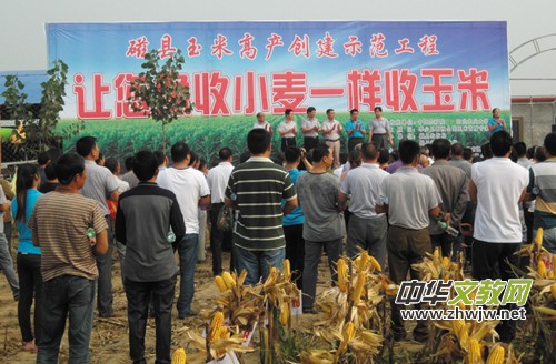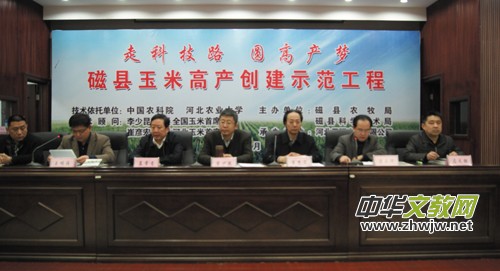 2014年磁縣夏玉米創(chuàng)高產(chǎn)技術(shù)集成示范基地項目研發(fā)機(jī)構(gòu)由聘請的中國農(nóng)科院研究員、中國首席玉米專家李少坤教授和河北農(nóng)業(yè)大學(xué)教授、河北省首席玉米專家崔彥宏及1名高級農(nóng)藝師、2名農(nóng)藝師、4名助理農(nóng)藝師組成。該項目主要采用創(chuàng)新技物結(jié)合服務(wù)模式,大力推廣優(yōu)質(zhì)、高產(chǎn)登海618、605新品種,推廣測土配方施肥、密植、機(jī)播機(jī)收、深耕及科學(xué)施肥、治蟲滅草等科研成果,實現(xiàn)現(xiàn)代化農(nóng)業(yè)生產(chǎn)方法,充分挖掘玉米增產(chǎn)的潛力,為全縣乃至周邊地區(qū)夏玉米高產(chǎn)起到典型示范帶動作用。今年主要實施地點是以磁縣中東部平原地區(qū)為核心示范區(qū),涉及磁州鎮(zhèn)、岳城鎮(zhèn)等11個鄉(xiāng)鎮(zhèn)256個行政村,建設(shè)萬畝超高產(chǎn)優(yōu)質(zhì)玉米種植基地2個,登海618等玉米新品種100畝以上規(guī)模示范方20個,玉米全程簡化生產(chǎn)技術(shù)推廣核心區(qū)面積2000畝,示范區(qū)面積3萬畝。通過建設(shè)統(tǒng)一品種、統(tǒng)一耕種、統(tǒng)一技術(shù)標(biāo)準(zhǔn)、統(tǒng)一田間管理、統(tǒng)一病蟲防治的“五統(tǒng)一”高產(chǎn)示范田,輻射帶動了全縣及周邊地區(qū)玉米產(chǎn)業(yè)快速發(fā)展。在收獲季節(jié),經(jīng)過中國農(nóng)科院作科所謝瑞芝研究員為組長的專家團(tuán)對產(chǎn)量實打驗收:2014年登海618、605玉米新品種的示范區(qū),實現(xiàn)了玉米畝產(chǎn)873.2公斤、859.6公斤的高產(chǎn),奪取了全省麥茬夏玉米高產(chǎn)的桂冠。經(jīng)邯鄲玉米產(chǎn)業(yè)體系機(jī)械粒收實打驗收,80畝晚春玉米,畝產(chǎn)933.5公斤,創(chuàng)造邯鄲春玉米高產(chǎn)記錄。磁縣玉米高產(chǎn)科研項目的實施大幅度提高了全縣糧食綜合生產(chǎn)能力,對加快農(nóng)業(yè)種植結(jié)構(gòu)調(diào)整、促進(jìn)農(nóng)業(yè)增效和農(nóng)民增收,推動玉米生產(chǎn)向規(guī)模化、標(biāo)準(zhǔn)化、產(chǎn)業(yè)化方向發(fā)展有著極其重要的意義。