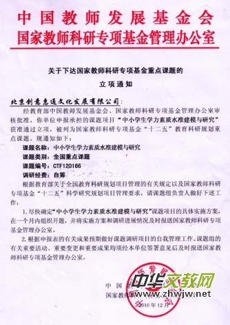 根據(jù)教育部中國(guó)教師發(fā)展基金會(huì)、國(guó)家教師科研專(zhuān)項(xiàng)基金管理辦公室課題指南,結(jié)合本課題的具體實(shí)際,經(jīng)由教育部中國(guó)教師發(fā)展基金會(huì)、國(guó)家教師科研專(zhuān)項(xiàng)基金管理辦公室同意,總課題組決定組織實(shí)施《中小學(xué)生學(xué)力素質(zhì)水準(zhǔn)建模與研究》規(guī)劃2010~2011年度子課題、實(shí)驗(yàn)區(qū)校申報(bào)工作,現(xiàn)就有關(guān)事項(xiàng)通知如下: