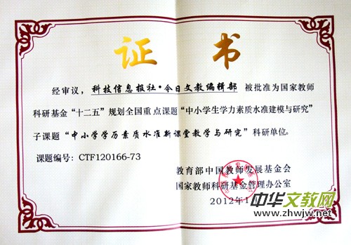 課題管理與評(píng)價(jià)認(rèn)證單位:教育部中國(guó)教師發(fā)展基金會(huì)