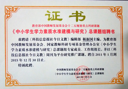 《中小學(xué)生學(xué)力素質(zhì)水準(zhǔn)建模與研究》科研課題組研究員