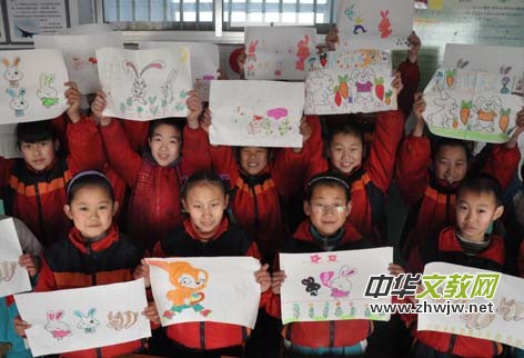 兔年來到,山東省桓臺縣索鎮(zhèn)耿橋小學(xué)的學(xué)生們用畫筆畫出千姿百態(tài)的吉祥兔,祝賀兔年來臨,表達自己兔年奮發(fā)努力美好的心愿。圖為孩子們展示自己作品時的情景。