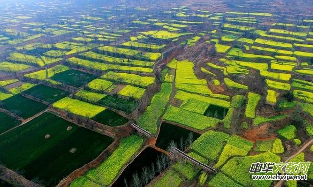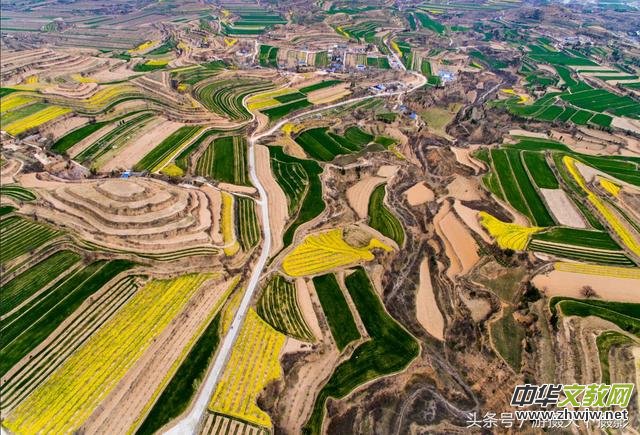 陽春三月黃土高原又現(xiàn)大地調(diào)色板