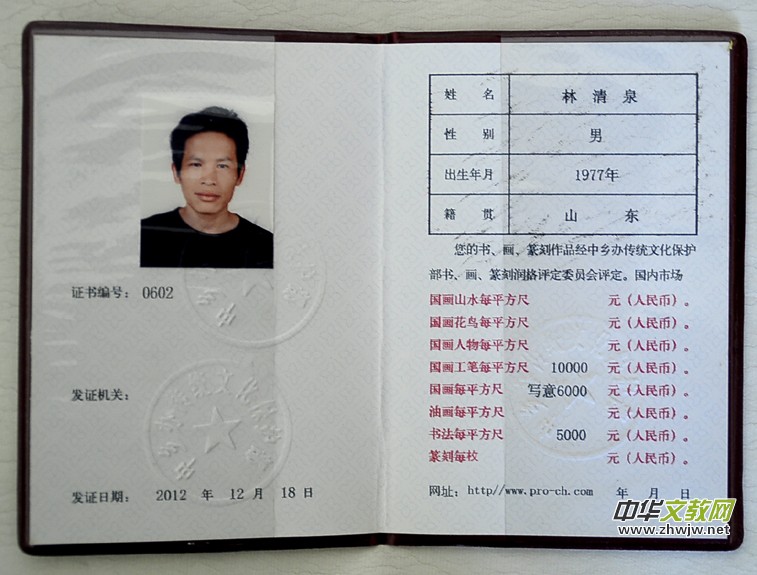 作品潤格:國畫人物工筆每平方尺 10000元,寫意和白描;每平方尺6000元。