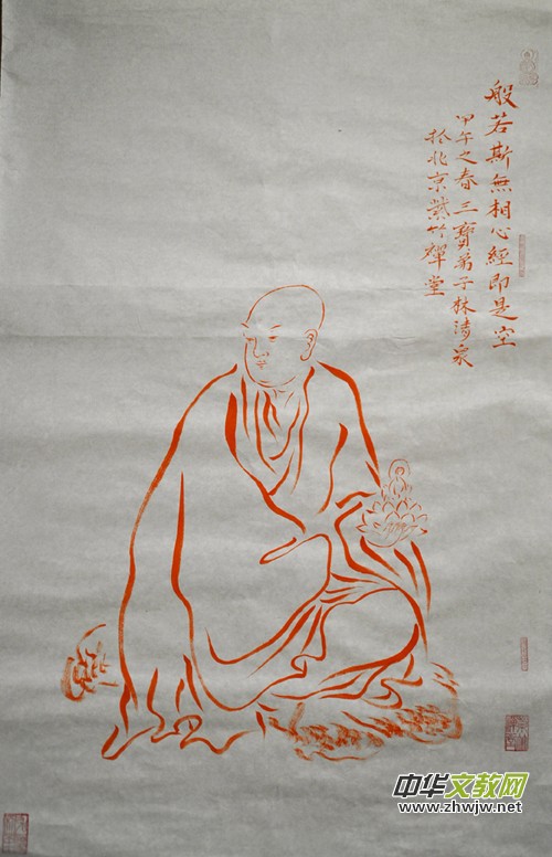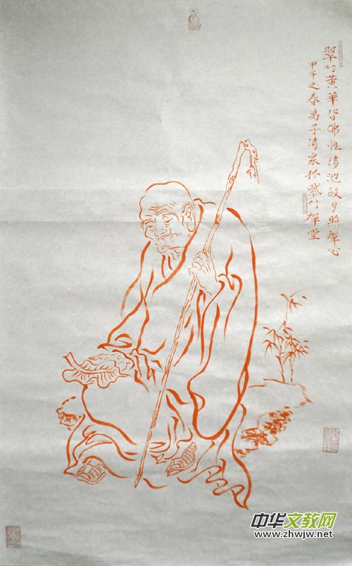 清泉先生白描功力相當深厚,幾筆下來一個鮮活靈動的佛教人物就躍然紙上,神態(tài)逼真,讓賞者見佛容而起清靜之心,再加上畫上題有一首禪詩,更是常閱常新。易學家們常說書畫不僅可以收藏,掛在房屋里也有調(diào)風水之功能,那么,要是掛上一幅清泉先生的一幅佛像圖,我想就不僅只是風水之說了吧,每日面對佛容,可生清靜之心而得智慧和大福報。