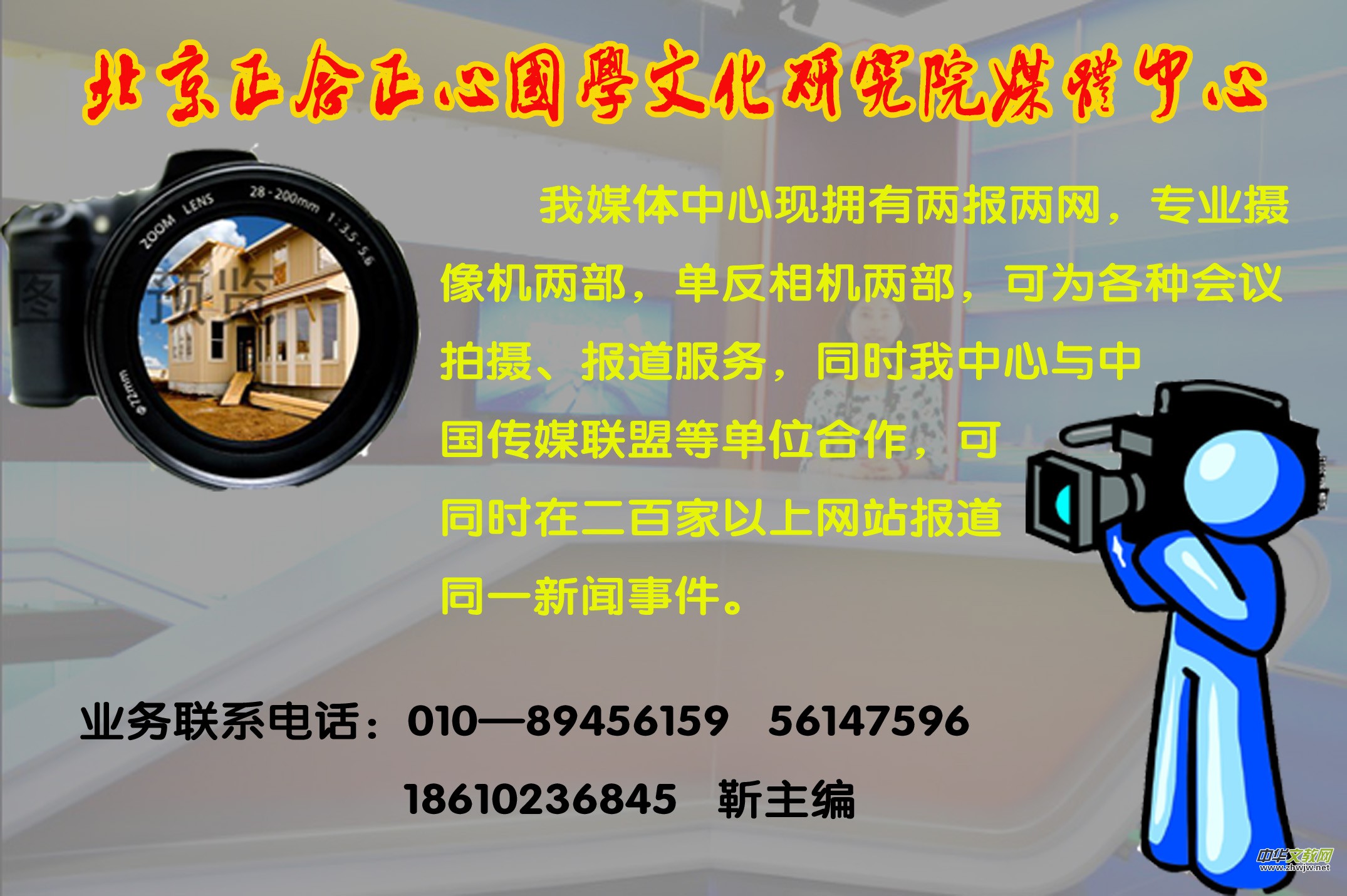 為各種會議專業(yè)攝像、拍攝、報道服務 2015-04-11 22:27 本站原創(chuàng) 佚名 北京正念正心國學文化研究院媒體中心現(xiàn)擁有兩報兩網(wǎng),專業(yè)攝像機兩部,單反相機兩部,可為各種會議拍攝、報道服務,同時我中心與中國傳媒聯(lián)盟等單位合作,可同時在二百家以上網(wǎng)站報道同一新聞事件。 業(yè)務聯(lián)系電話:010—89456159 56147596 18610236845 靳主編