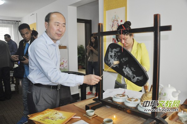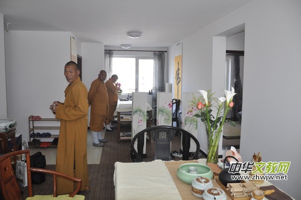 中國(guó)寺廟文化促進(jìn)會(huì)理事持明法師等到交流中心。