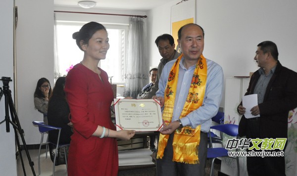 張富英副會(huì)長(zhǎng)為林玲頒發(fā)聘書。