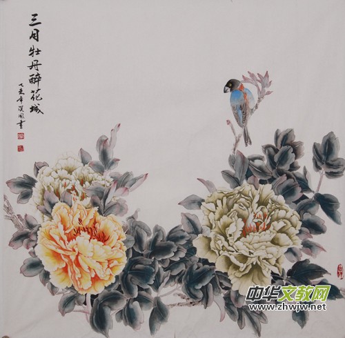 三月牡丹醉花城,工筆,四尺整張