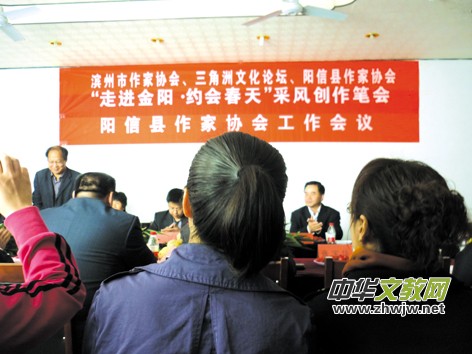 本報(bào)訊;4月16日,山東省濱州市作家協(xié)會(huì),黃河三角洲文化論壇在陽(yáng)信金陽(yáng)辦事處會(huì)議室舉行,黃河三角洲文化論壇管理員張維亮,山東省散文學(xué)會(huì)秘書長(zhǎng)王展,濱州市作家協(xié)會(huì)主席李登建,陽(yáng)信作家協(xié)會(huì)主席徐玉峰,陽(yáng)信金陽(yáng)辦事處黨工委書記呂保平及濱州市作家協(xié)會(huì),陽(yáng)信作家協(xié)會(huì)會(huì)員60余人出席了會(huì)議。會(huì)議就陽(yáng)信是黃河三角洲經(jīng)濟(jì)區(qū)和山東藍(lán)色經(jīng)濟(jì)區(qū)重疊區(qū)域的優(yōu)勢(shì),給作家詩(shī)人創(chuàng)造了難得的機(jī)遇和良好平臺(tái),各級(jí)領(lǐng)導(dǎo)希望廣大作家。詩(shī)人多寫作品多出精品。
