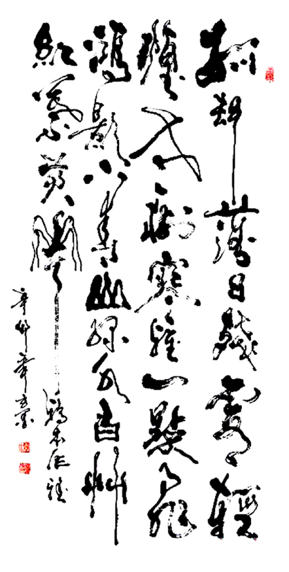 總之,他的書法整體給人的感覺是法度精嚴(yán),壯闊雄渾,既有“北派”的沉穩(wěn)博大,又有“南派”的秀潤華滋。其壯美的境界與崇高的精神融為一體,形成了不遠離傳統(tǒng)又具有個性的筆墨語言特色。