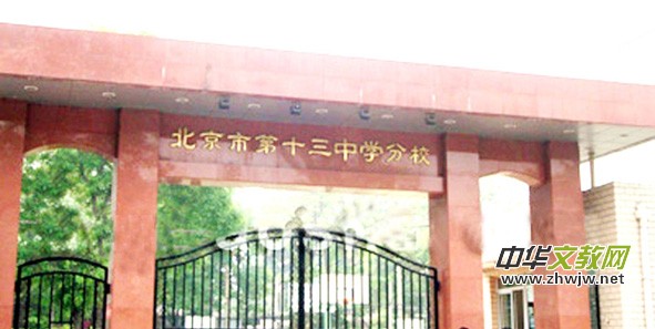 北京市第十三中學(xué),1952年由原輔仁大學(xué)男附中演變而來(lái);校舍仍位于西城區(qū)柳蔭街,校園占地五十余畝,由清朝濤貝勒府改建而成,因此校舍被列為北京市重點(diǎn)文物保護(hù)單位。校園內(nèi)蒼松翠柏、四季常青,學(xué)習(xí)環(huán)境幽雅怡人。教學(xué)樓寬敞明亮,由西城區(qū)政府投資興建的7000平方米現(xiàn)代化的實(shí)驗(yàn)樓拔地而起,內(nèi)有各種裝備先進(jìn)專業(yè)教室,如:物理、化學(xué)、生物實(shí)驗(yàn)室,多媒體教室、微格教室、語(yǔ)音教室、計(jì)算機(jī)網(wǎng)絡(luò)教室、電子備課室和室內(nèi)體育場(chǎng);室外有橡膠跑道及天文觀象臺(tái)等。