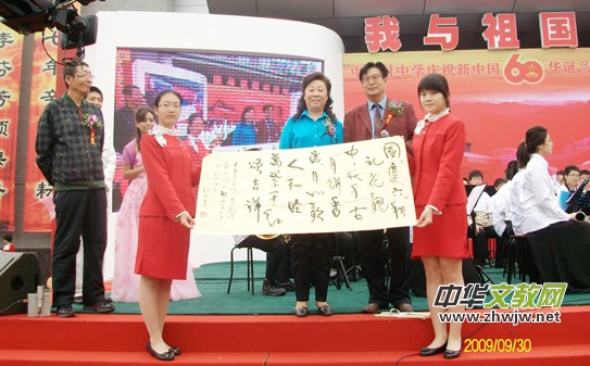 閃世昌與邢曉萍校長在中關(guān)村中學國慶節(jié)慶典