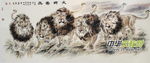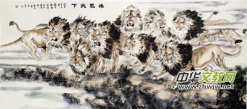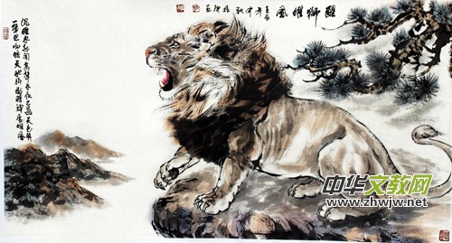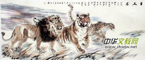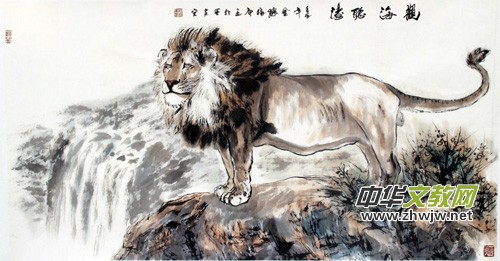 他的畫(huà)作,大氣磅礴,筆墨嫻熟,技法老道,蒼勁有力。尤其是其畫(huà)作的獅虎頭部,造型精準(zhǔn),形神兼?zhèn)洌殉伞耙唤^”,被多位名家所稱道。其獅虎畫(huà)作,畫(huà)幅雖大,卻也形態(tài)各具,動(dòng)感逼真,為“寫(xiě)意獅虎”的代表作,諸多作品被社會(huì)各界收藏。